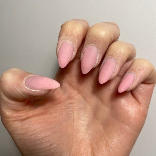 Prep the nails and push back the cuticles. Shape and buff the natural nail bed with a grey and yellow buffer. Dust and wipe the nails with GELLUX Prep & Wipe, before applying a thin layer of GELLUX Fast Bond. Apply two thin layers of GELLUX Builder Gel in Rose Pink, curing each layer for 60 seconds. Wipe off any sticky excess with GELLUX Prep & Wipe and lightly buff the nails for a matte look. Use a nail brush to remove any dust.