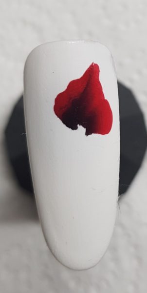 Using red and black acrylic-based paints, using the one stroke technique blend the two shades together.