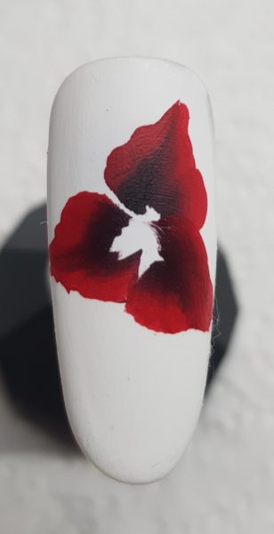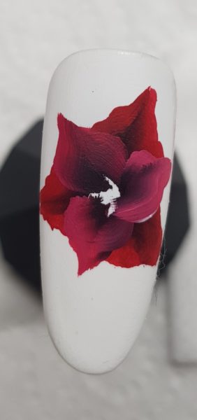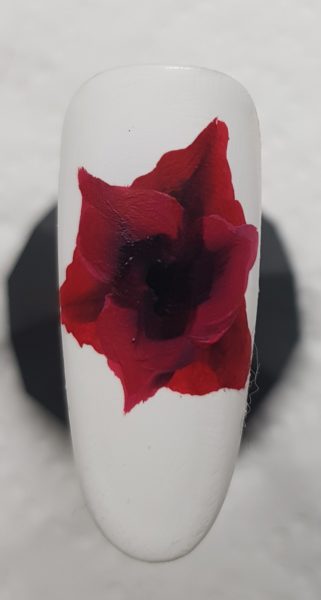 Next, mix the black and red with a tiny bit of white and create three more petals within the first three.