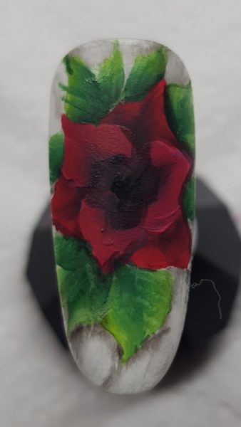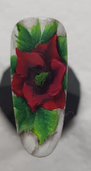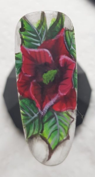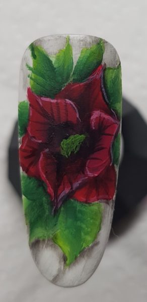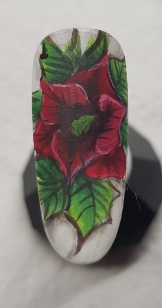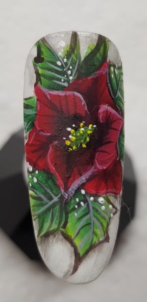 Scratch Stars One Stroke Artist of the Year 2018 & 2019 winner, Rebecca Isaac, used the one-stroke technique to create the crimson petals of this poinsettia flower.