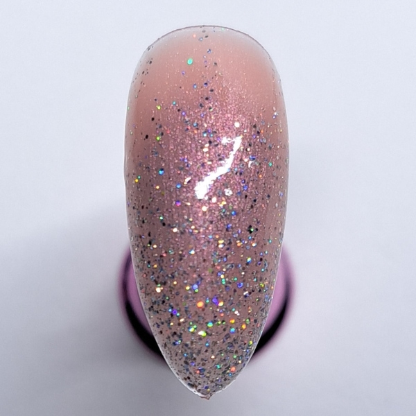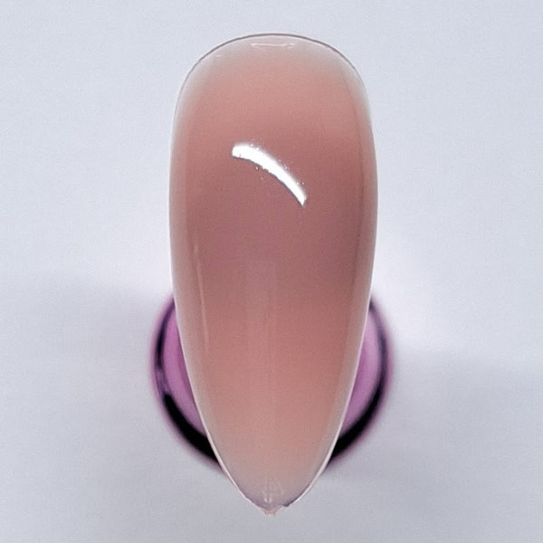 Apply Glitterbels Brush On Builder Gel in Cover Beige to a prepped nail. For best results, apply a thin layer first and build the nail shape and structure with the second layer. Cure each coat for 60 seconds.