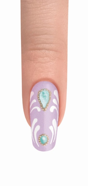 Get ready for a royal affair with this embellished design from Gelish, featuring fancy shades from the new Royal Temptations collection.