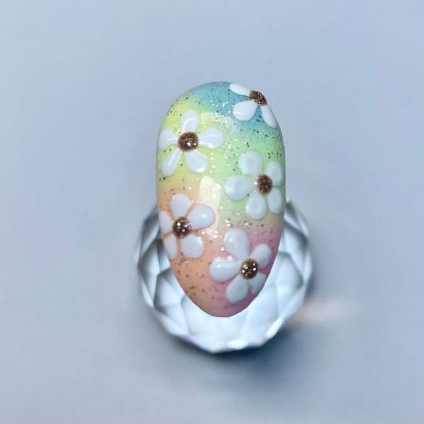 INK London educator, Toni Larkin, has created this pretty pastel nail design finished with daisies.