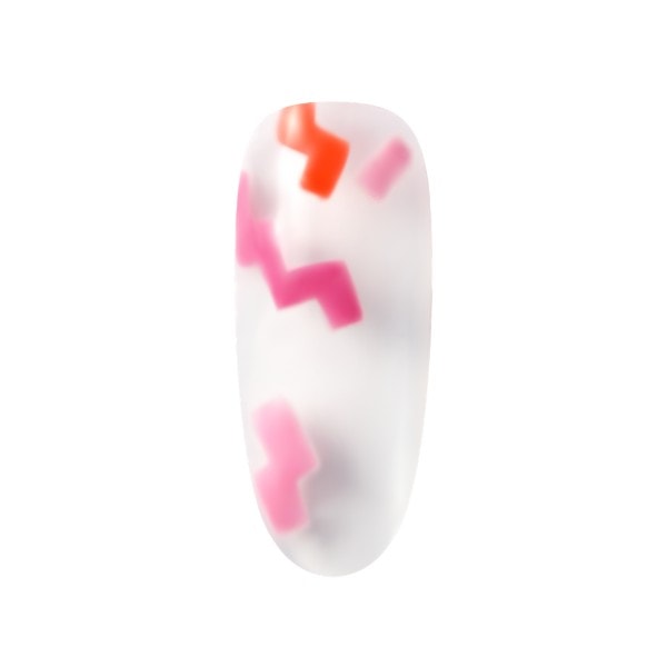 Begin by applying 1 coat of GelColor Base Coat to properly prepped nails. Cure 30 seconds in Dual Cure LED Light. Using a Nail Art Brush and OPI GelColor in Another Ramen-tic Evening, paint 2 zig zags. Flash cure 5 seconds.