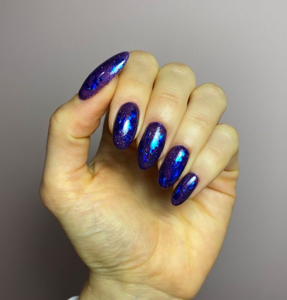Next, apply two coats of GELLUX Punk Purple, curing in between layers.