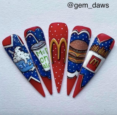 Check out the entries to the 17 March nail art challenge from Scratch, in which techs were tasked with creating designs inspired by fast food! Each design was submitted via Facebook or Instagram using #showscratch #creativechallenge.
