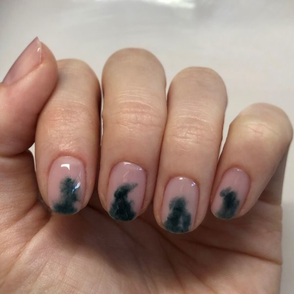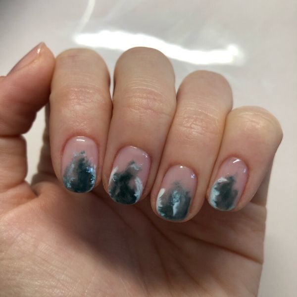 Next, apply one coat of Gellux Base and Topcoat, don’t cure (it’s important not to cure this layer so that the green can ‘smoke’ and ‘bloom’). Using a flat nail art brush pick up the Gellux in This Girl Can and dab the colour from the tip of the nail fading down, do not cure.