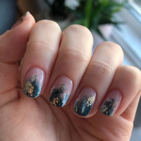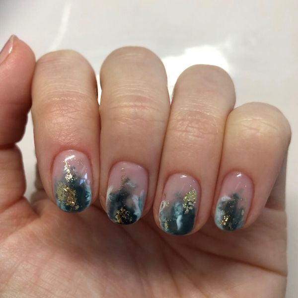 Marble is always a top trend, so Salon System nail expert Jaz Moger has created a revamped smokey marble step-by-step by putting a twist on this nail art fave with gold flecks.