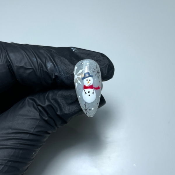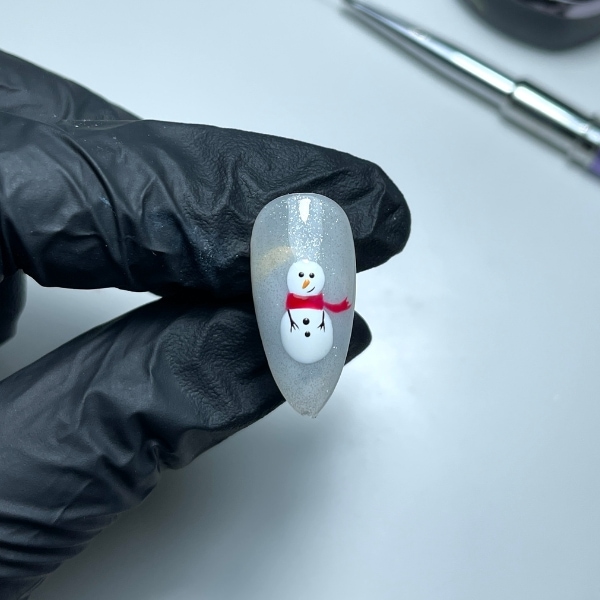 Recreate this wintery snowman nail design by Nathalia Baker of Nat Baker Nails by following the step-by-step below…