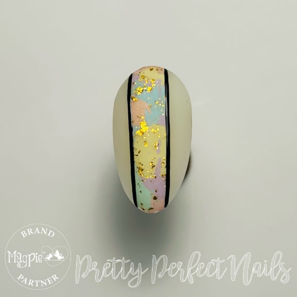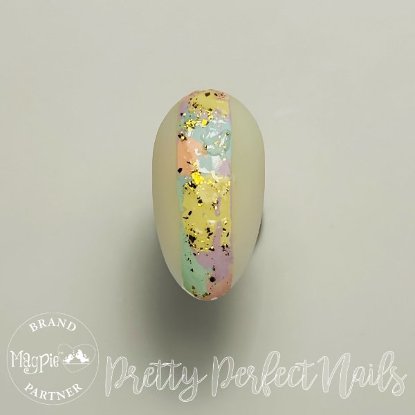 Choose five foils of your choice and dab them onto the cured gel down the middle, to create a mash-up of foils.