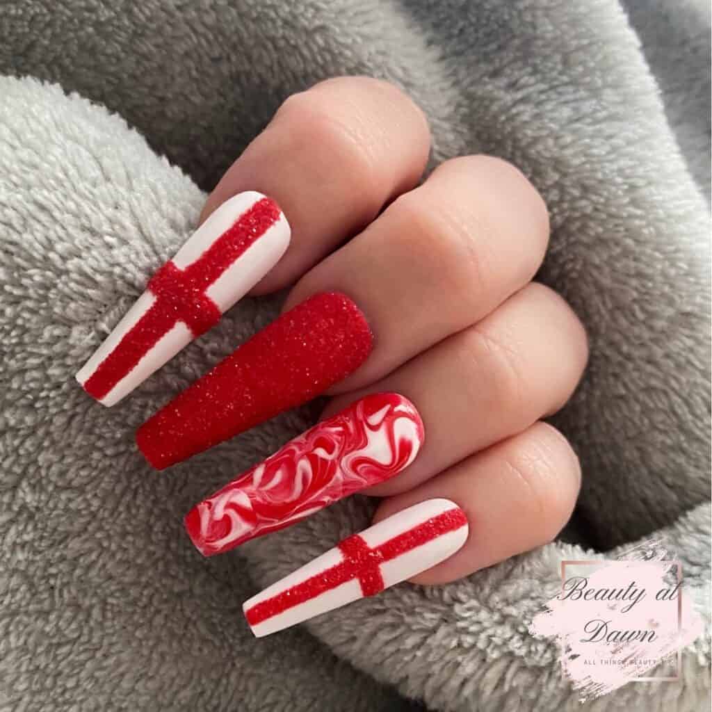 Check out themed nail designs, incorporating the flag of England and the English rose, to mark the cultural event and inspire manicures…