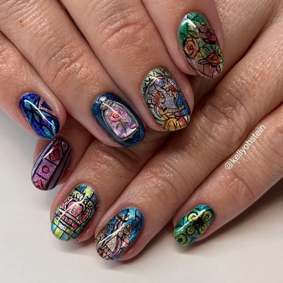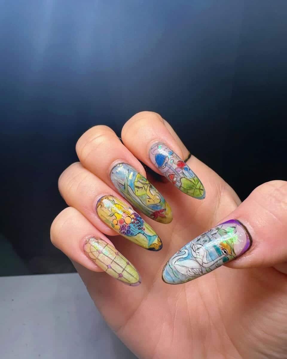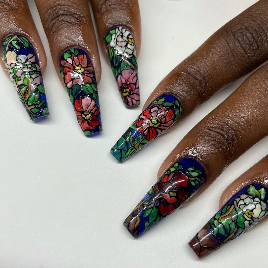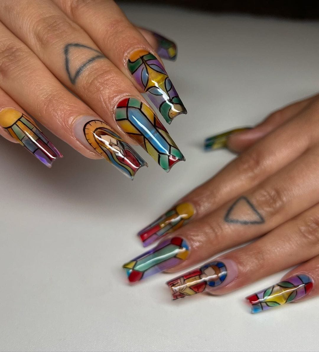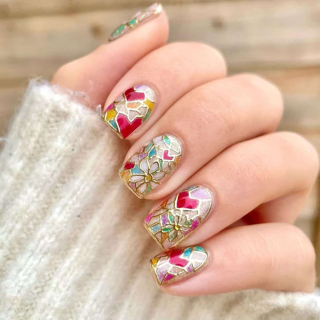 These eye-catching nail designs mimic the thousand-year-old, colourful, intricate art of stained glass windows. Check out our roundup of stained glass-inspired designs below…