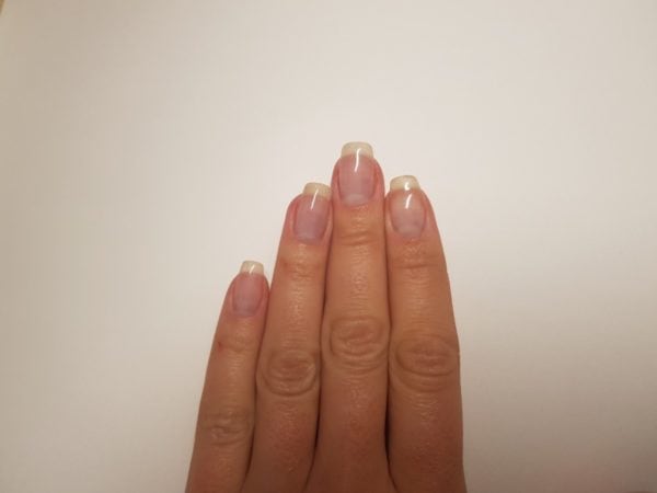 Using Stormy from the Gellux Mini range paint the middle and pinky finger. Cure. Then repeat your second thin coat making sure to cap the free edge.