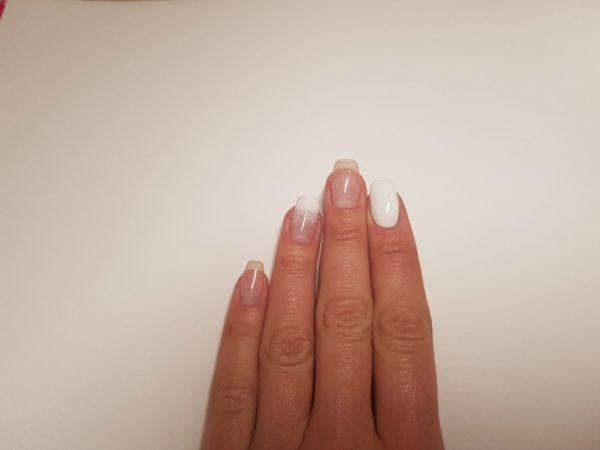 Paint the index finger in Gellux Purely White and then in ombre effect paint the ring finger. Cure, then repeat your second coat.