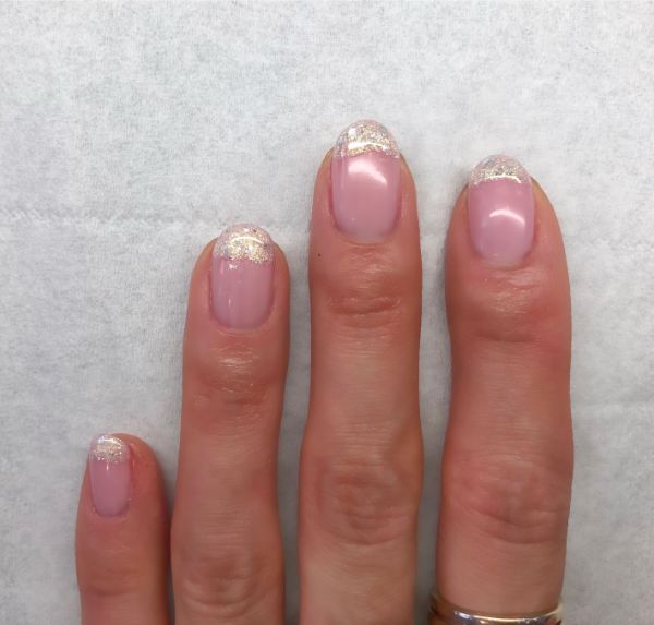 Apply GELLUX Dazzle Glitter Gel Polish to the tip of each nail but do not cure.