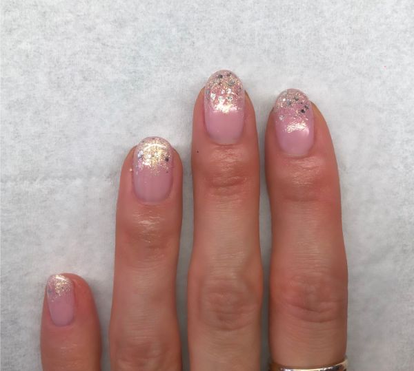 Using a medium liner brush, gently brush up the glitter to create the fade effect and cure.