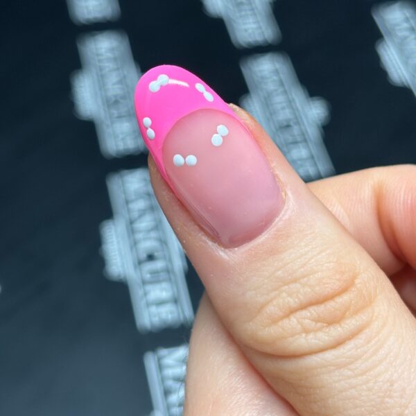 Paint five pairs of dots in a circle using The Manicure Company UV LED Gel Polish in True White. Do not cure.