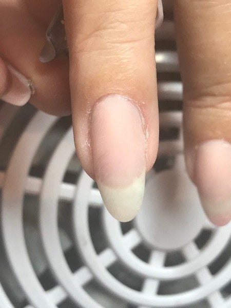 Apply Akzentz Luxio in Dauntless to the other half of the nail. Do not cure.