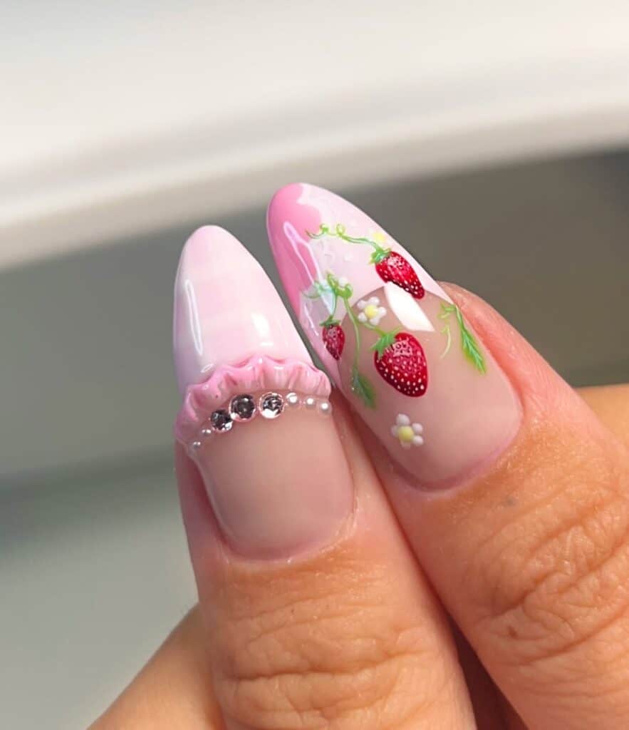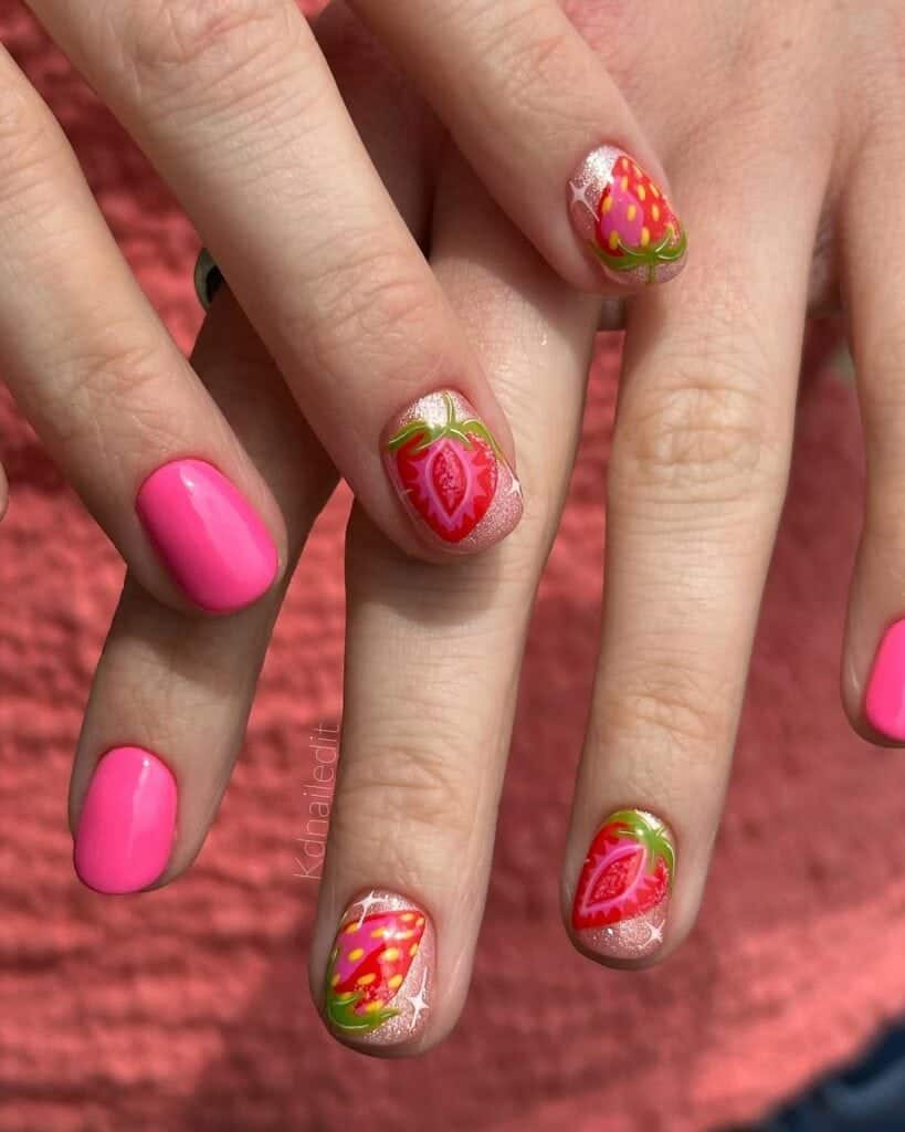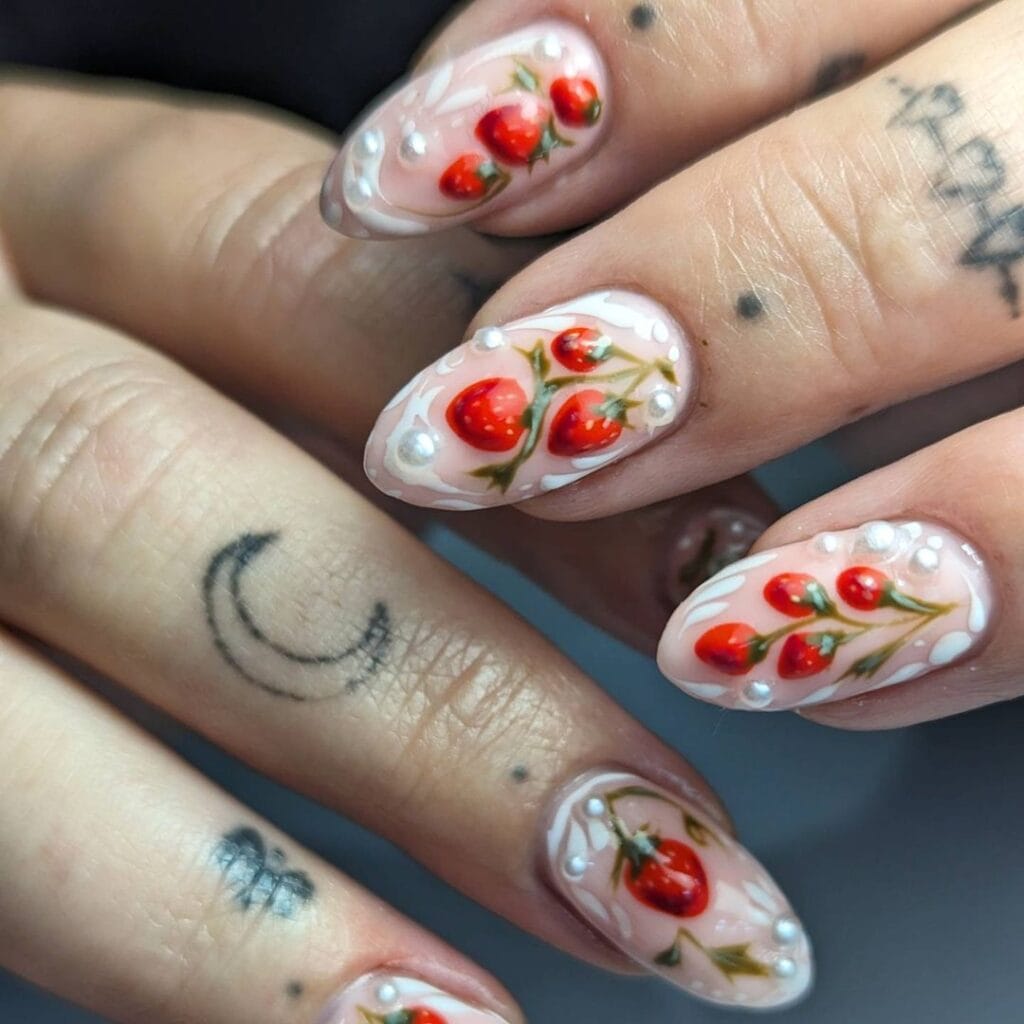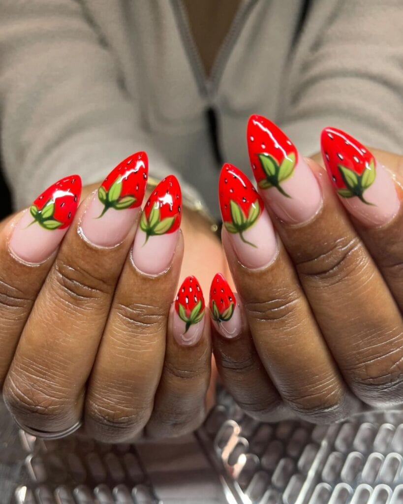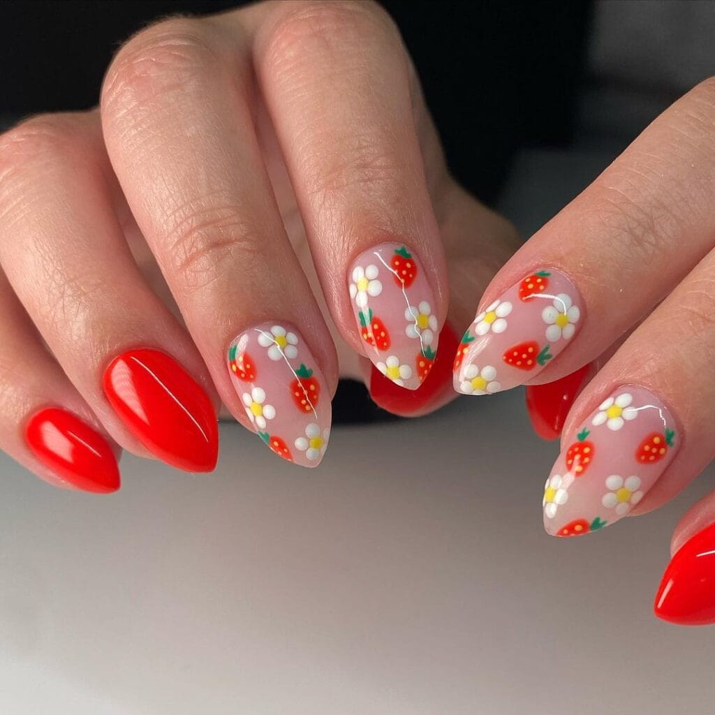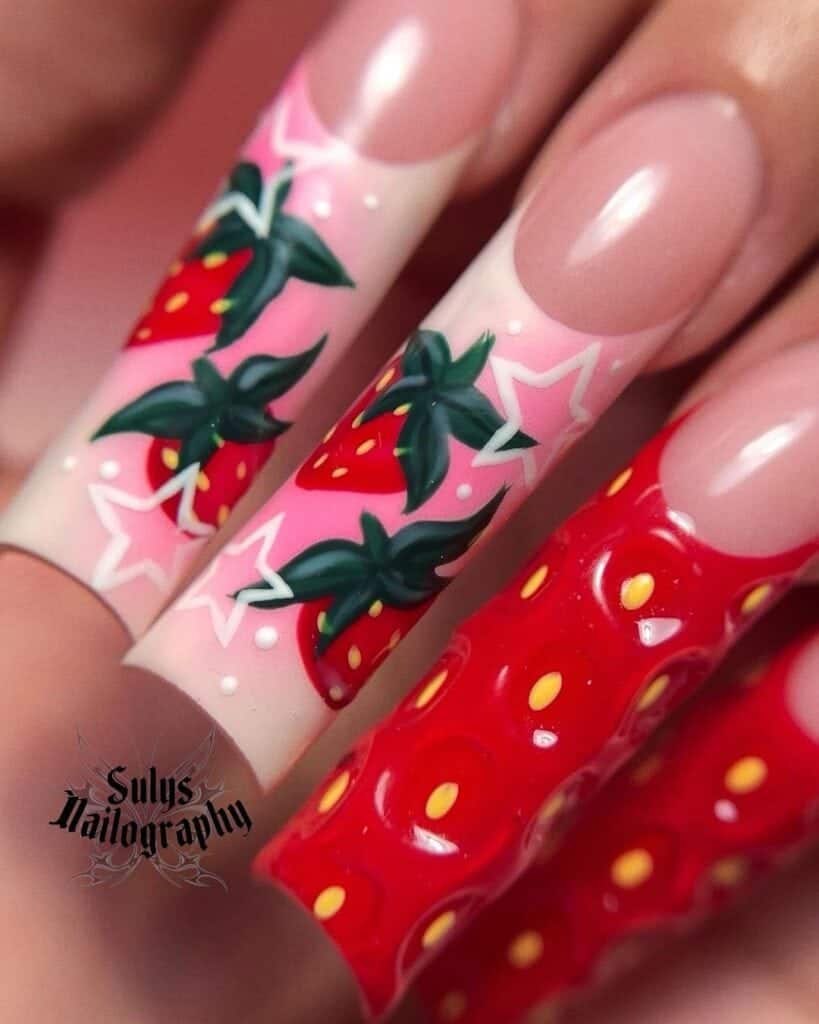 Give nail art a fun and fruity twist this summer with strawberry-themed designs. The look is soaring in popularity, beautifully complementing sunny weather.