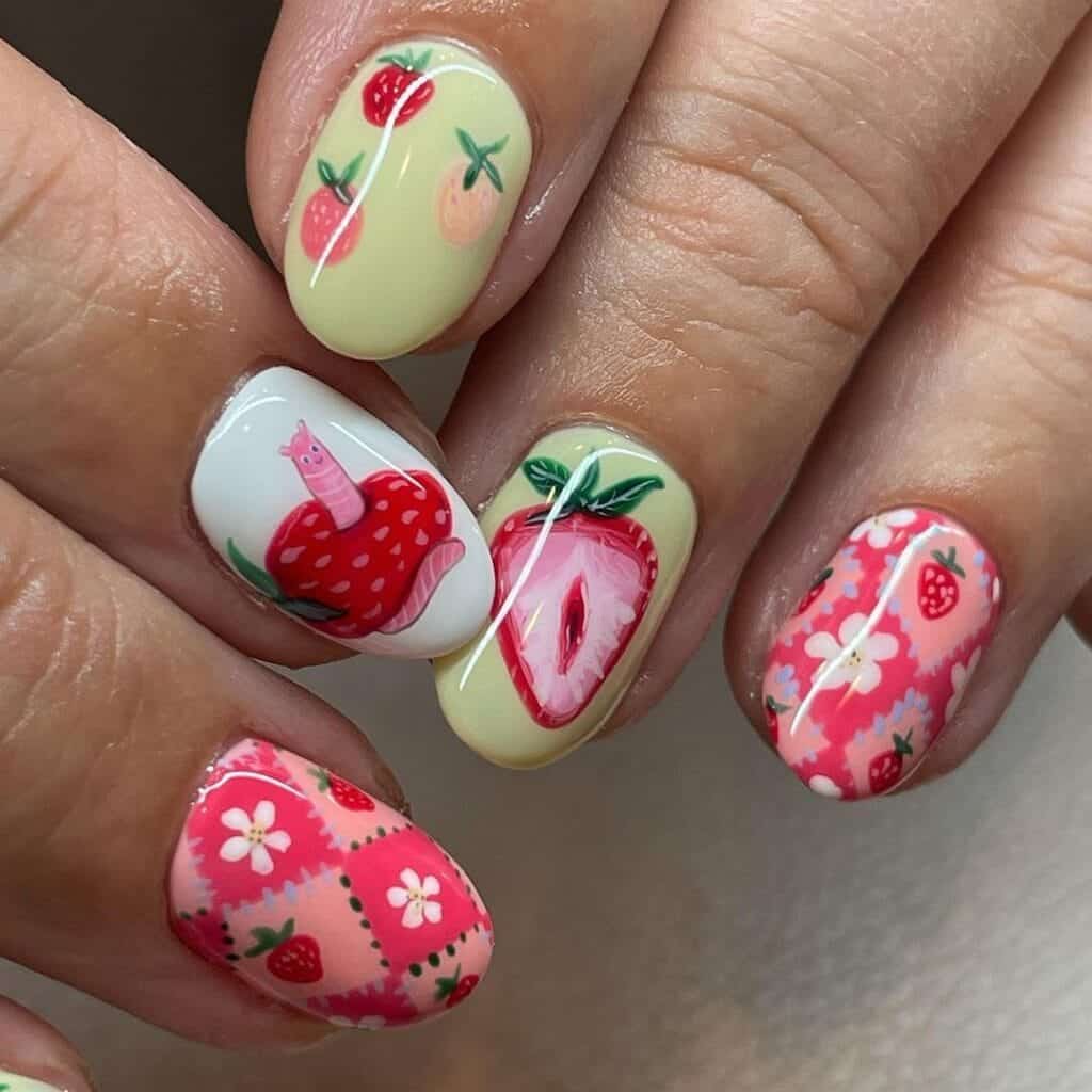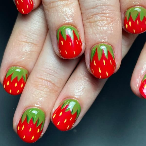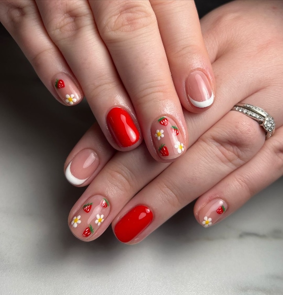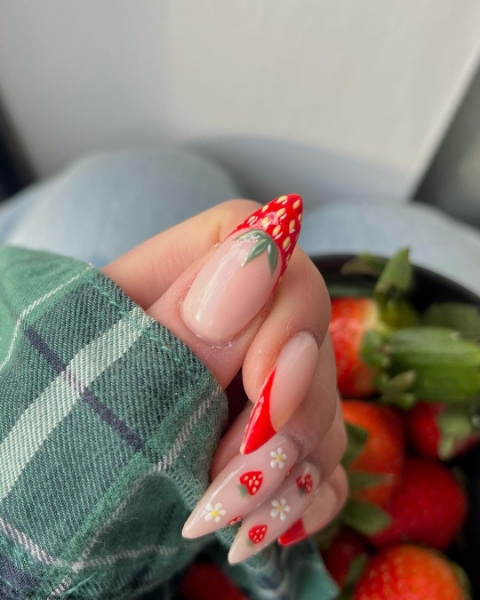 Add sweetness to summer styling with these 50 strawberry nail art ideas