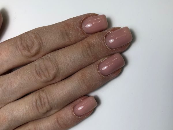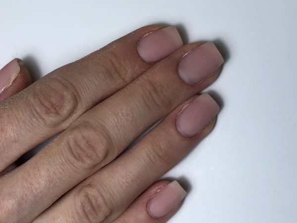 Remove the sticky layer using Gel Cleanser. Use a 150/150-grit file to shape to enhancement. Remove dust.