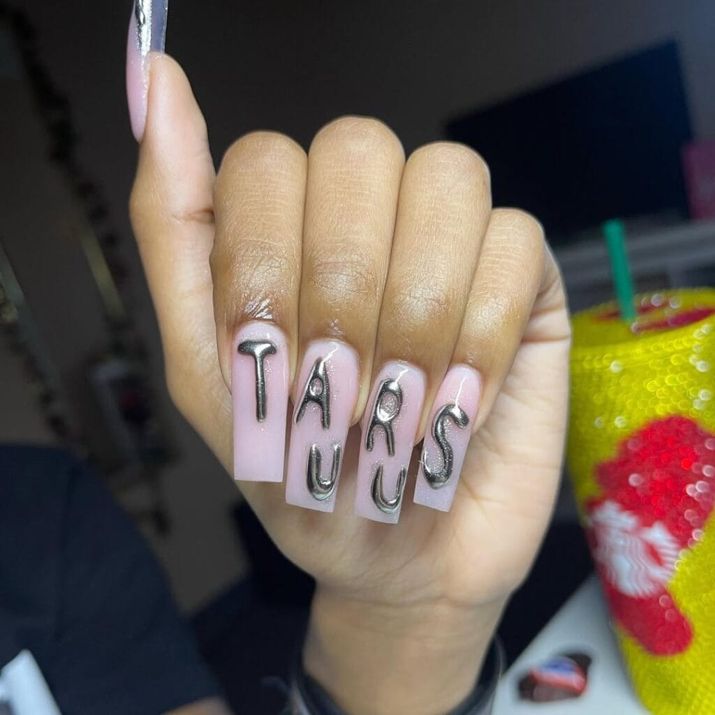 Taurus’ symbol is the bull, portraying strength and determination, and offers an ideal way to incorporate the earth sign into nail designs.