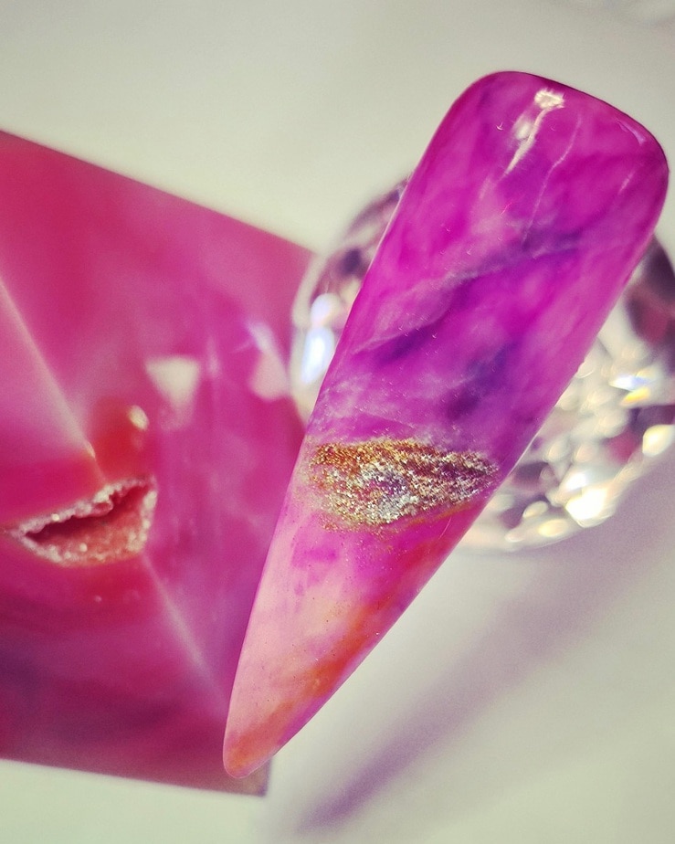 "My entries represent my spirituality and ability to connect and heal using crystals. I have been practising energy work and clairvoyance for many years, where my crystals have played a big part in assisting me, especially my pendulum. Even though Covid-19 has sadly been an unfortunate experience, it gave me the time to showcase my passion for crystals by expressing their beauty on nails. My entries may not contain an image of me or another person, but I feel where crystals are concerned, they speak for themselves."