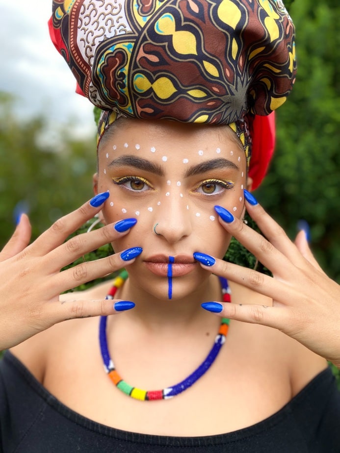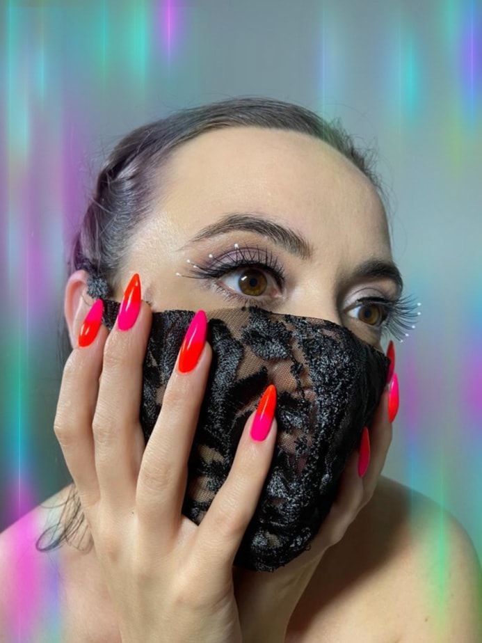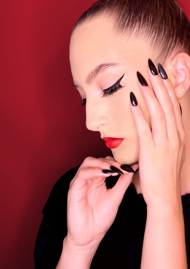 "Throughout this difficult year and during Covid-19 lock down I have cried many tears. When we were told to shut down our business I thought my life was over so I spent most of my time of lock down doing my own nails and doing my makeup in hopes of lifting my spirits. When people ask me if I could only wear one colour - it would be black, they would be extremely long and they would of course be stilettos! This image represents me in my truest form."