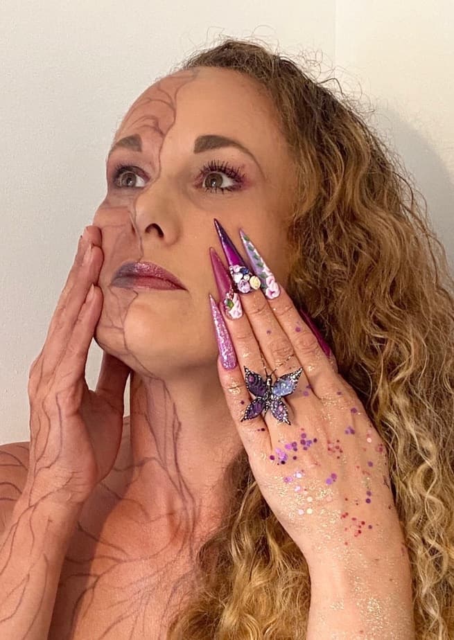 "There are times I feel strong and vibrant, but also times when I feel delicate and fragile. No matter my spirit at any fleeting moment in time, through nail art, I have the privilege of casting the magic of love and happiness for my clients and receive lots of love from them in return. This photo portrays me in a multifaceted and magical light, featuring polished nails in red, the color of love and passion."
