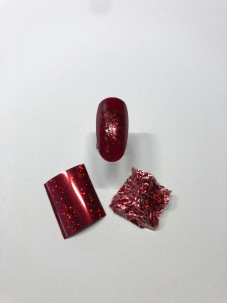 Take a section of red foil and crumple it to create a crinkle effect. Apply the foil over the nail.