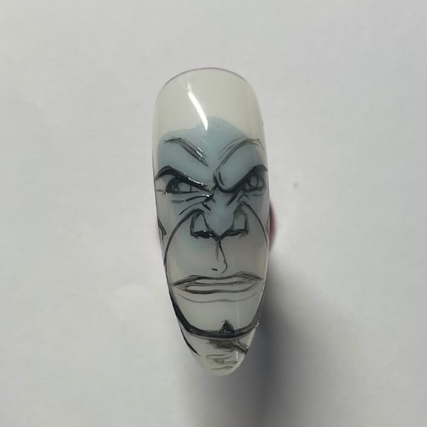 Add teeth details, and go over any black lines that you want to stay prominent. Place the start of the hairline and cure.