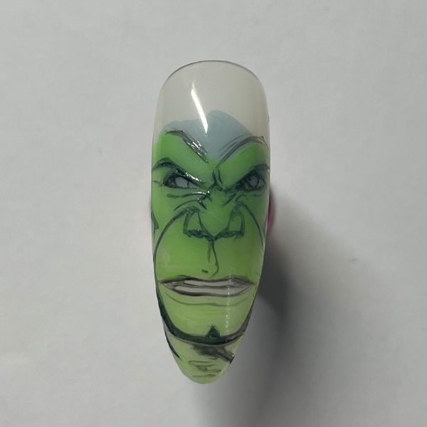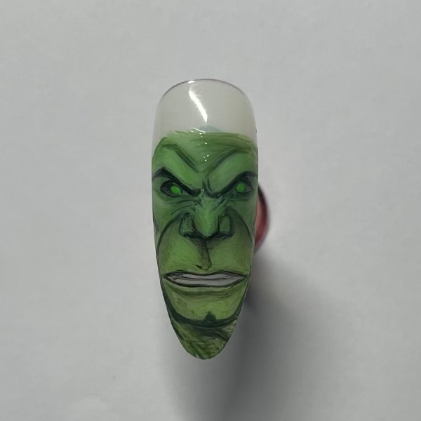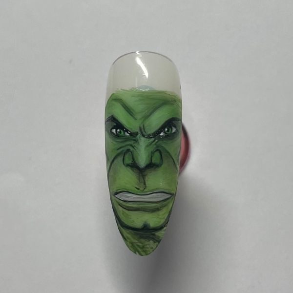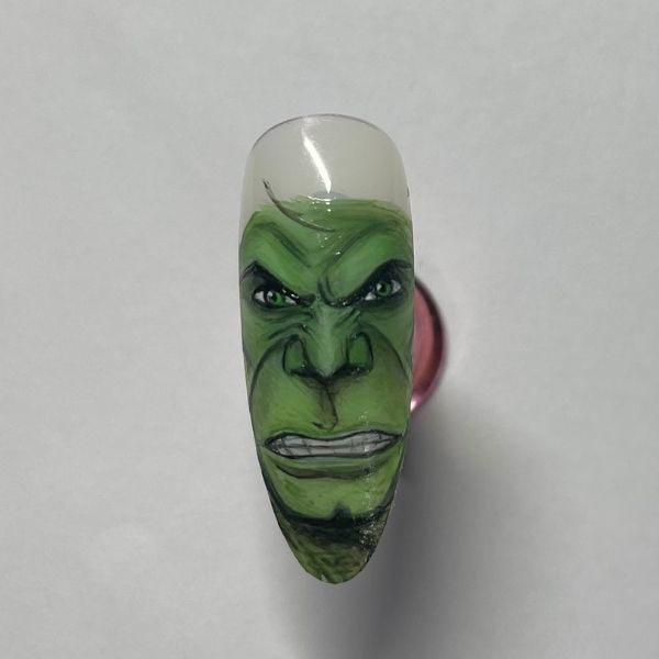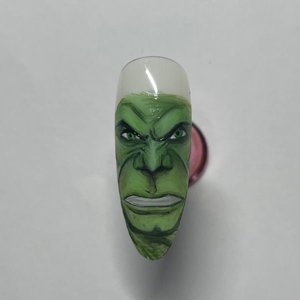 Freehand nail artist, Gemma Dawson, has created this Incredible Hulk nail design. Check out the step-by-step below to recreate the look!