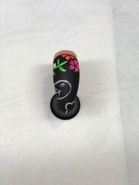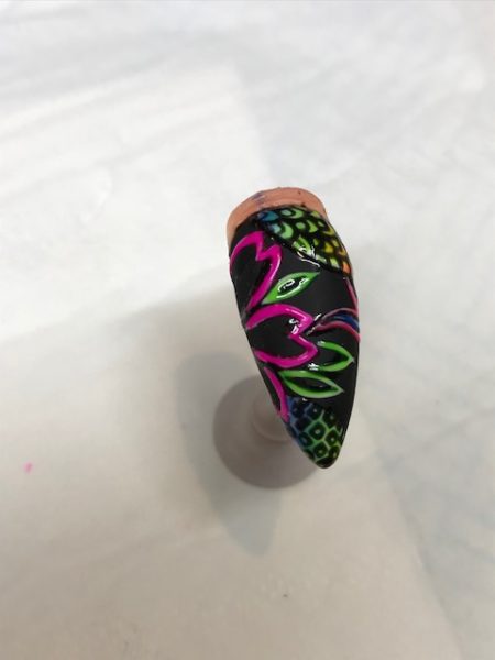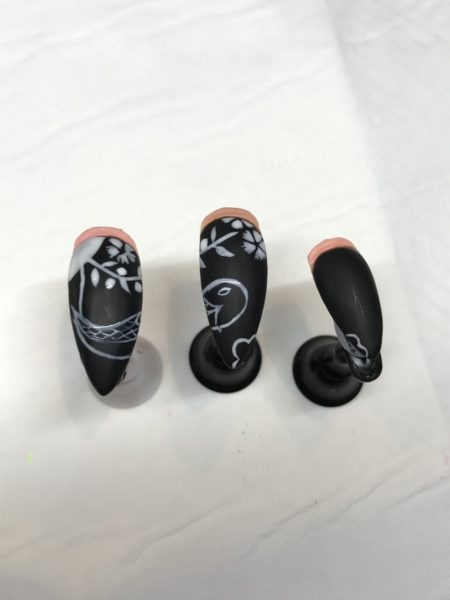 Neaten any edges and add details to your design with the base coloured gel. I’ve also added detail to the kimono patterns with my black hue. If you’re using pigments, top coat before doing this step.