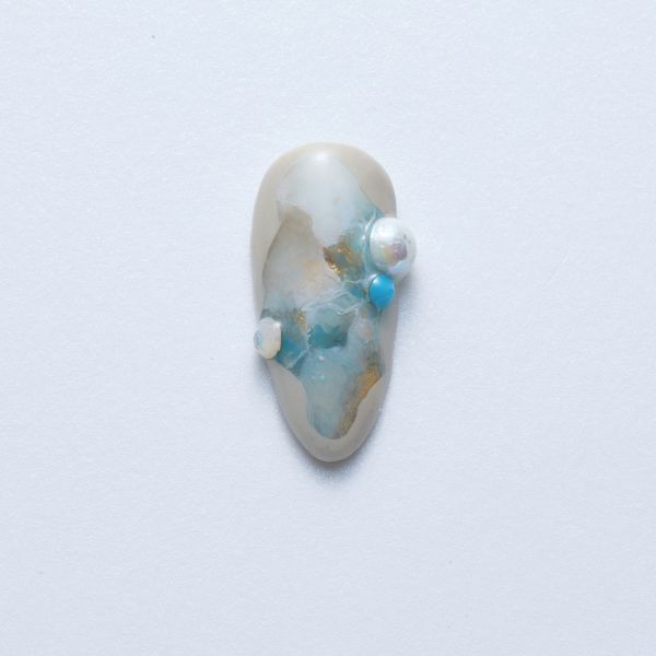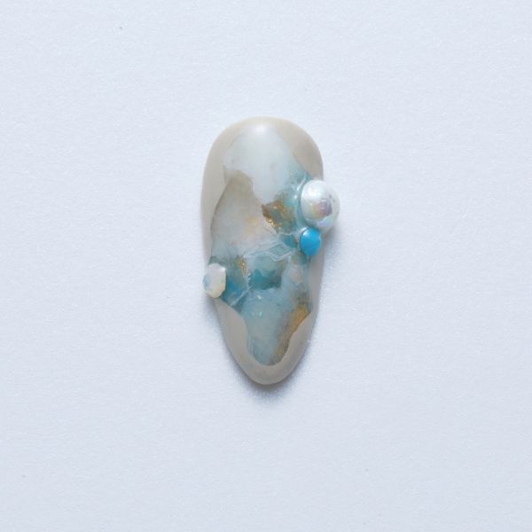 Dazzle and delight with this hidden turquoise marble gel nail art design, which can be recreated in nine steps.