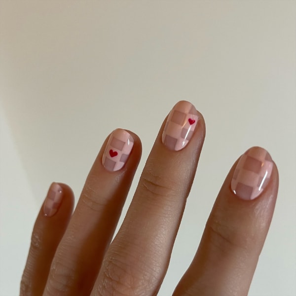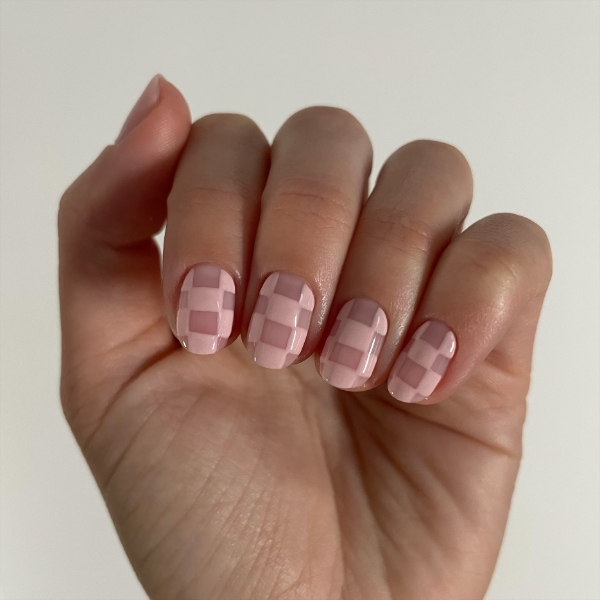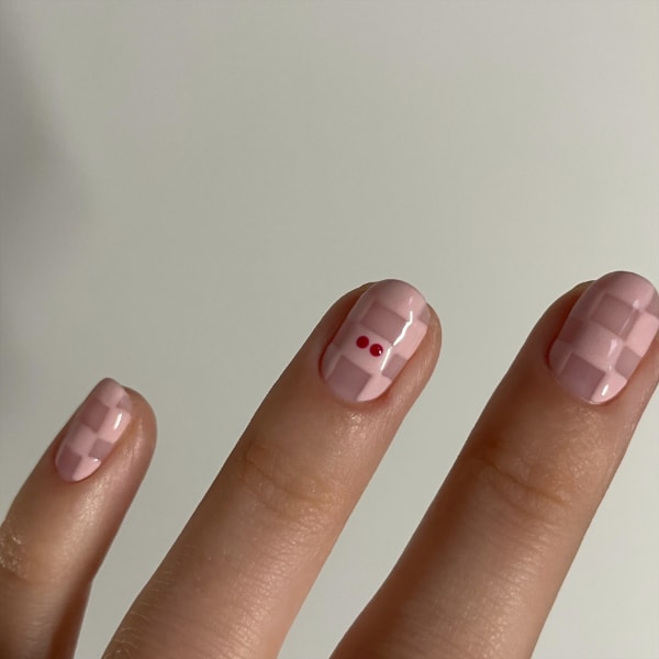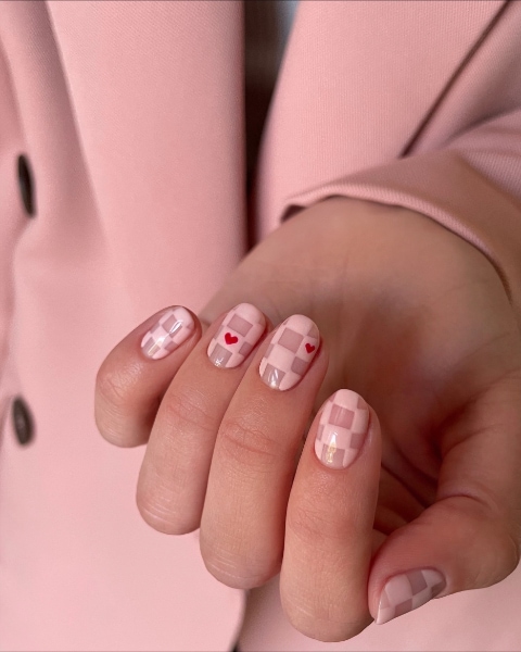 Salon System nail expert, Jaz Moger, has created a Valentine’s checkerboard nails step-by-step using GELLUX.