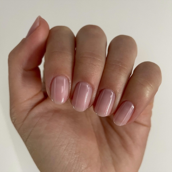 Prep the nails. File to shape, push back the cuticle and buff the nail plate. Cleanse nails with GELLUX Prep + Wipe, apply a coat of GELLUX Light Pink Builder Gel and cure for 60 seconds.