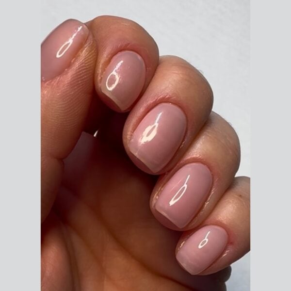 Prep nails, then apply two coats of Mii Statement Gel Polish in Naturally Modest, curing between each layer.