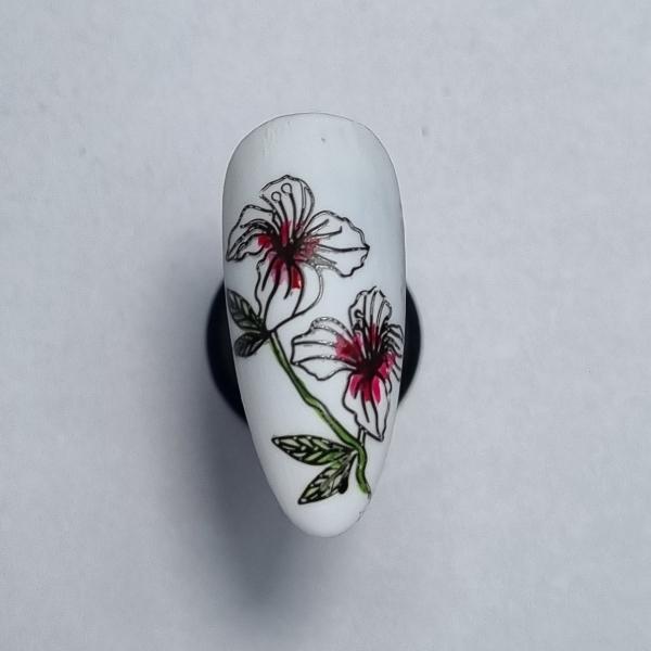 Stars Home Nail Salon of the Year finalist, Vonny Tuckley of Nailcraft by Vonny & Nailcraft Training Academy shows off how to create this vintage watercolour floral design using the Moyra Stamping Plate in 107 Botanical.