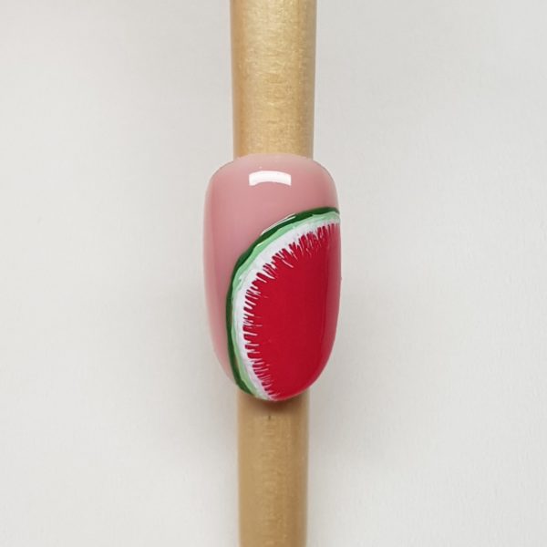 Crystal Nails brand ambassador, Barbara Szollosi, has created this summery watermelon nail art using products available via www.crystalnails4u.co.uk