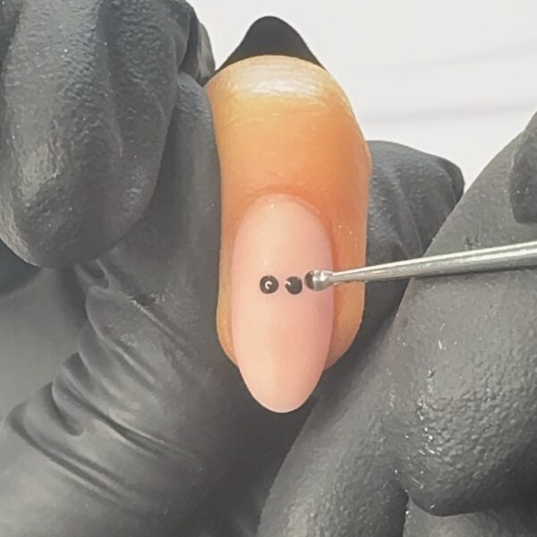 “The same technique can be used to craft a hand-painted initial: another popular bridal nail art choice,” she notes. “Draw the initial on paper first to gain the client’s approval, before painting a light and sketchy outline using a fine liner brush and black gel paint. Add more gel paint to the brush and thicken up the lines until you are happy with the letter, then apply the chrome. My top tip is if you don’t feel confident painting lettering, practice. Don’t attempt on a bride for the first time!”
