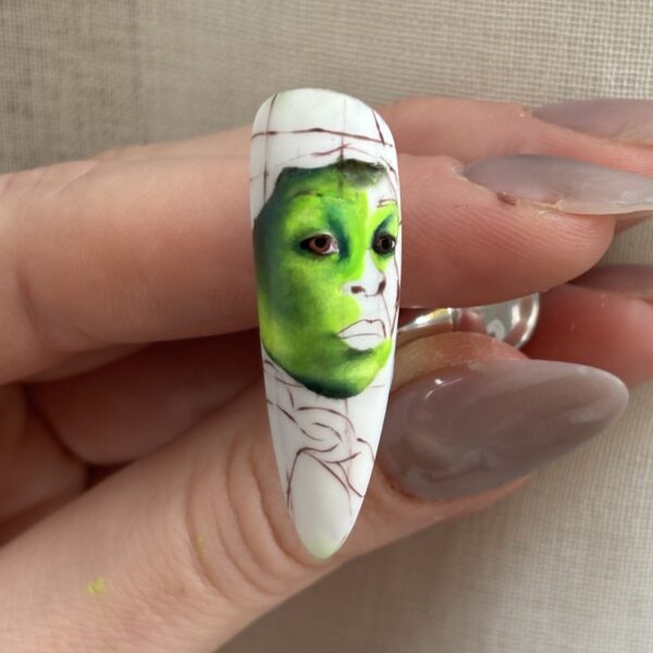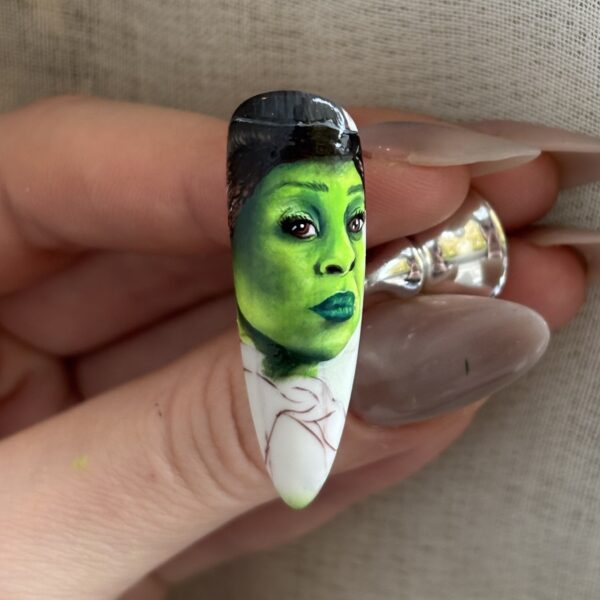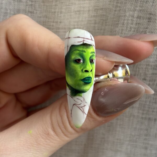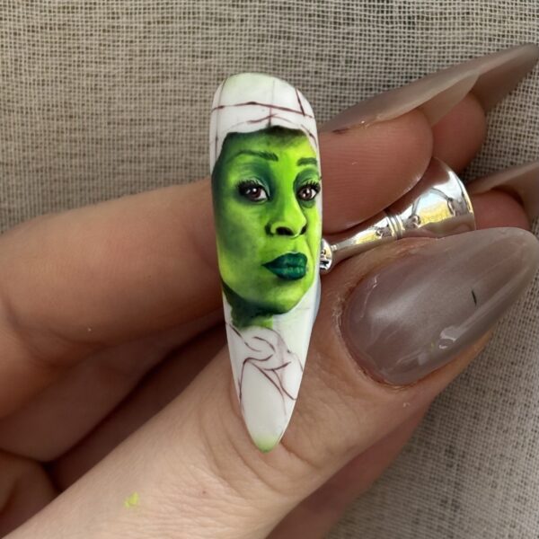 Scratch Stars & Nailympia award-winning nail artist, Alice Nali, shares a tutorial for a portrait of Wicked protagonist, Elphaba, played by Cynthia Erivo.