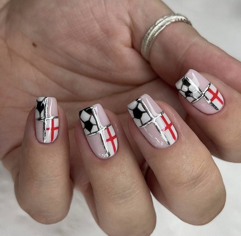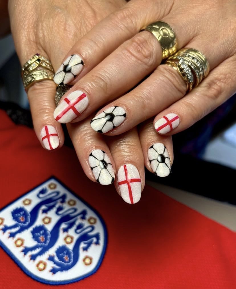 England’s Lionesses have made it to the finals of the UEFA Women’s Championship, and what better way to support the team than to sport a football-inspired manicure?
