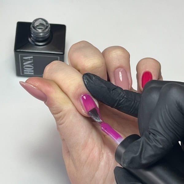 Finish with a layer of top coat over all your nails. Here, I’ve used HONA’s High Shine top coat, making sure to cap the free edge to give a long lasting manicure.