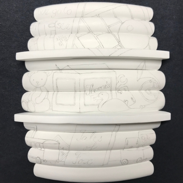 Continue with your gel paints to fill in sketched out areas on the third part of the box.