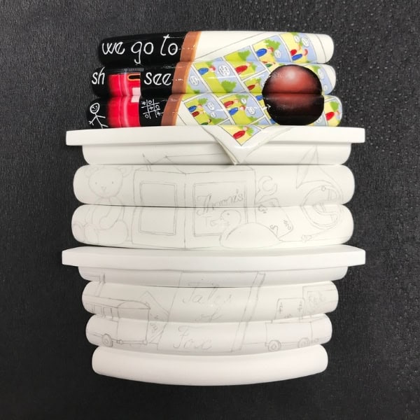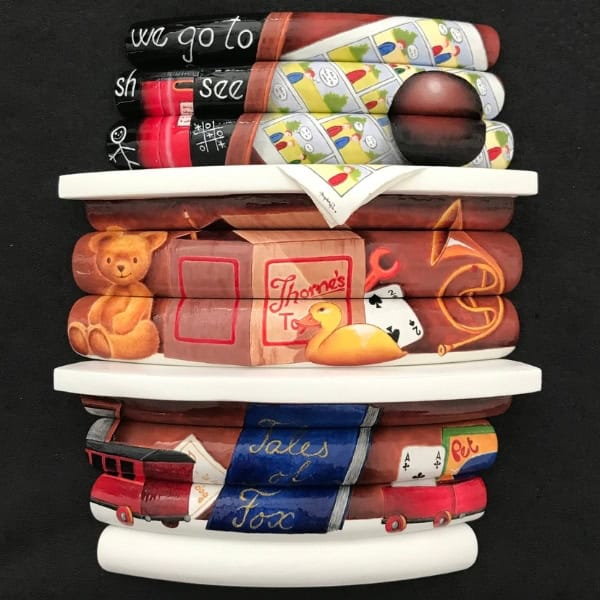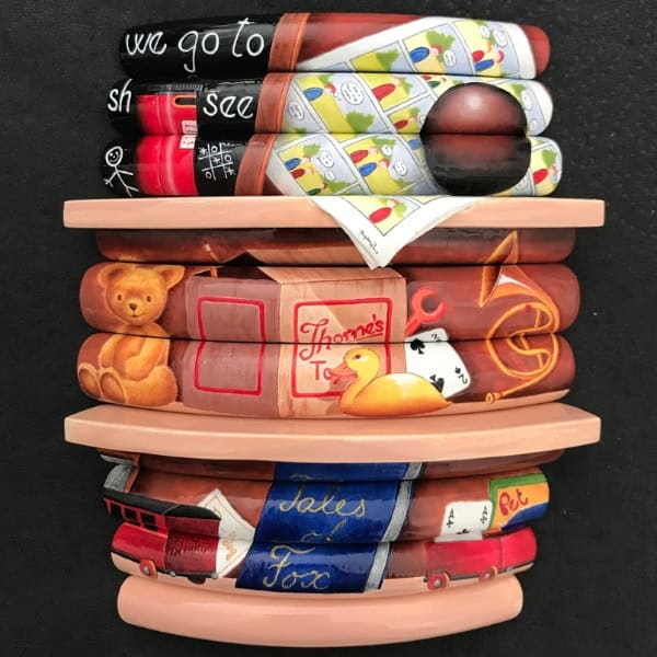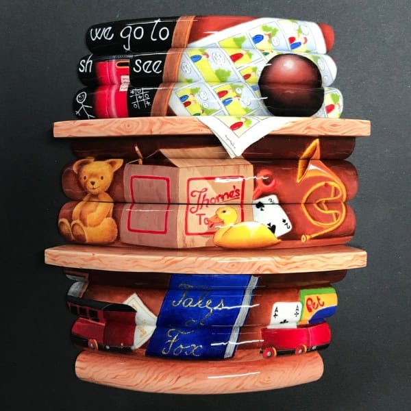 Use gel paints to create a wood texture on the shelf. Apply topcoat to all tips and shelves.