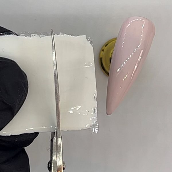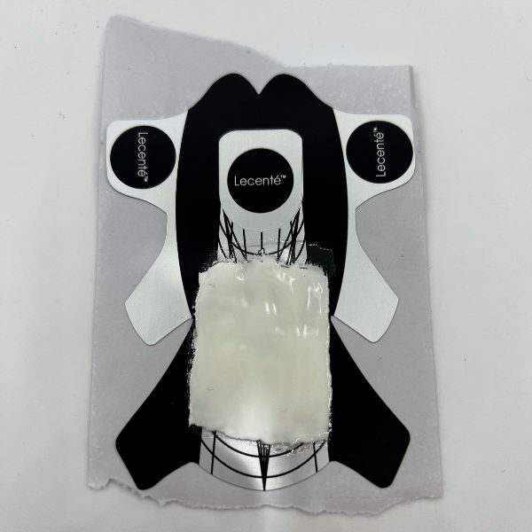 On a nail form, paint two coats of Lecenté Gel Polish in White Magic, curing between each layer. Apply Lecenté Rubber Top Coat and wipe the inhibition layer.