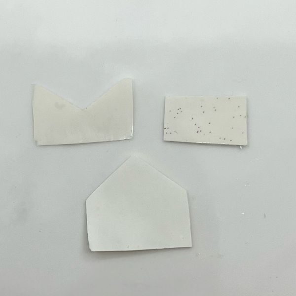 Use scissors to cut out the envelope and answer card shapes from the cured product.