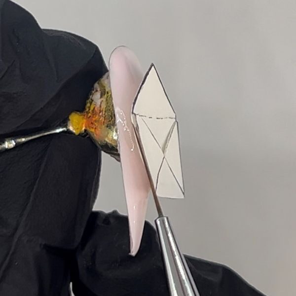 Fix the large envelope base to the nail using your chosen Lecenté top coat, and cure. Use the top coat to fix the top of the envelope around the two sides and bottom edge, therefore leaving it open.