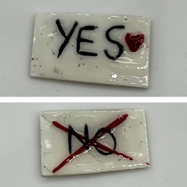 Paint a 'Yes' on one side of the answer card, and 'No' on the other. Cure.