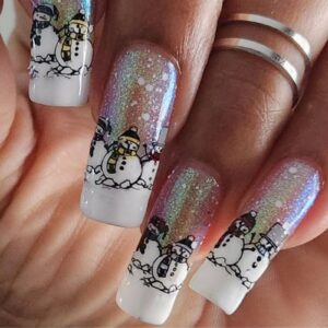 This season, snowy, magical landscapes dominate nail canvases, boasting sparkling snowflakes, white-dusted fir trees and reflective icicles. As for a colour palette, work with whites, silvers, blues, greens and browns…